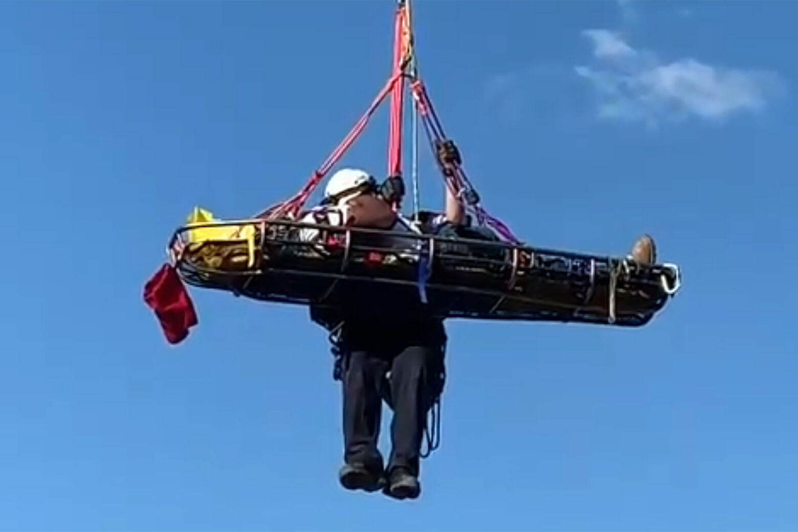 Crews used a crane to remove the workers from the site.